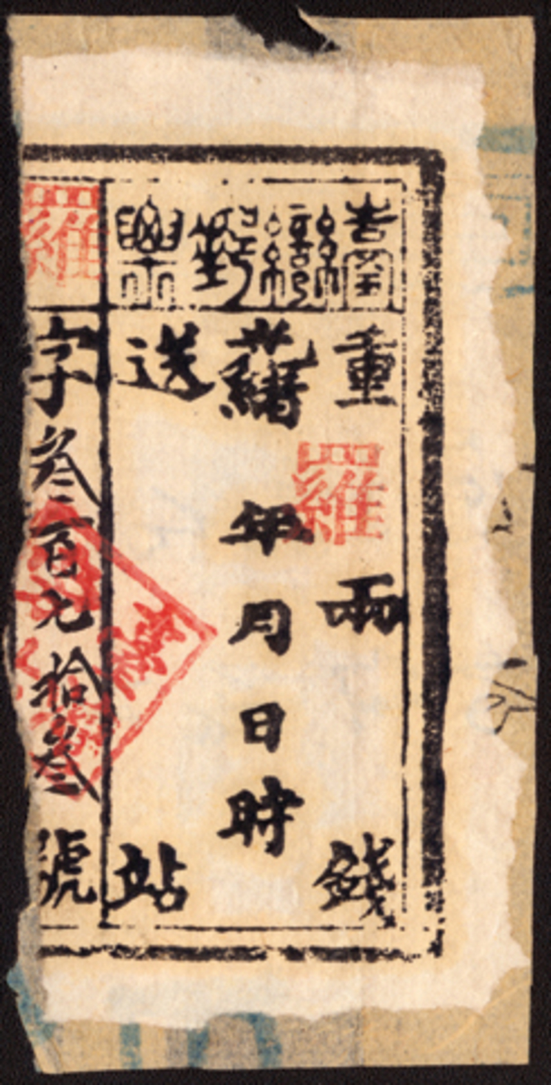 Official Postage Stamp, right half used on piece of cover, fine and scarce.