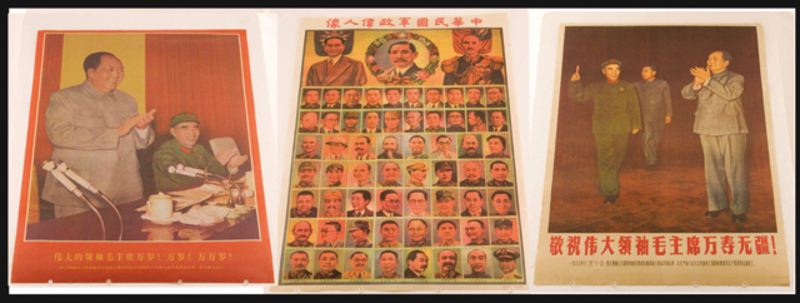 PRC: Group of Three Cultural Revolution Period Posters, including Chairman Mao with Lin Piao, another with Lin & Chou and an uncut matchbox covers featuring various political & military personnel of the Republic of China, scarce original examples.