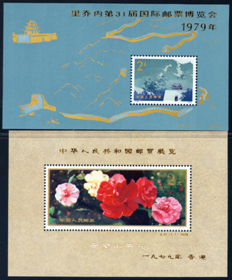 1979 (August 25) 31st International Stamp Fair in Riccione (Yang J41M) and 1979 (November 10) Postage Stamp Exhibition of PRC in Hong Kong (Yang J42M), a pair of souvenir sheets, both UM.