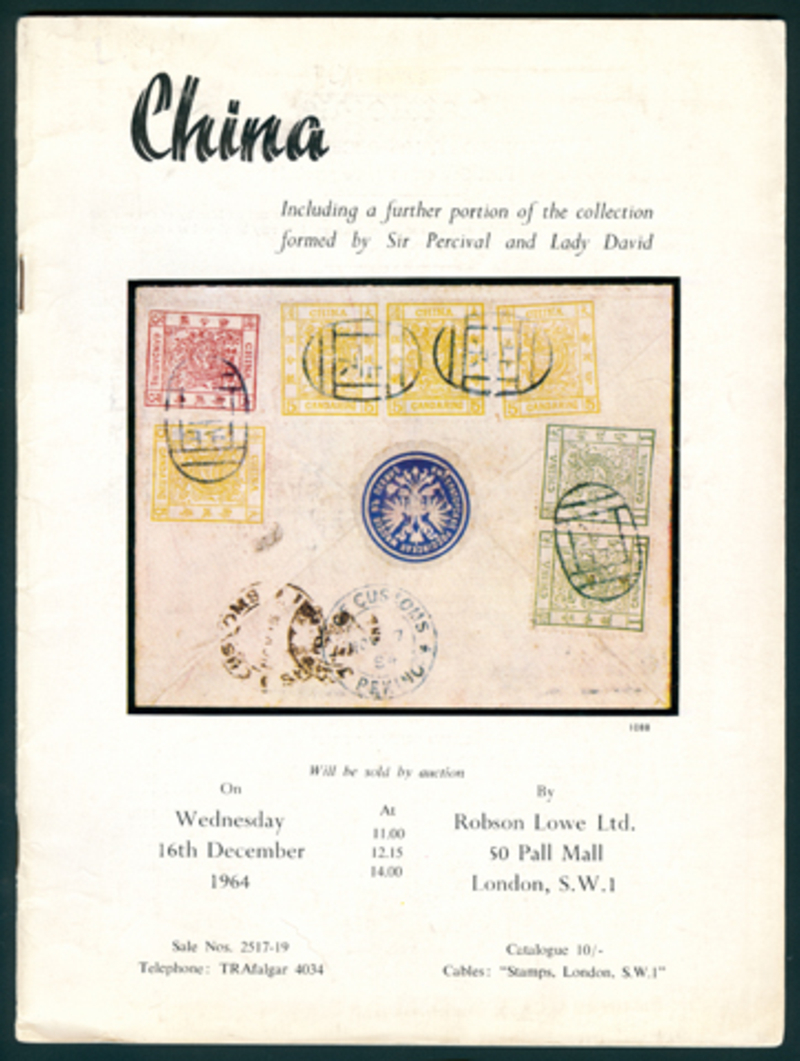 1964 (December 16) China, Sir Percival David, Robson Lowe (London), with prices realised, the first exclusive David sale full of stamp and cover rarities to 1912 period.