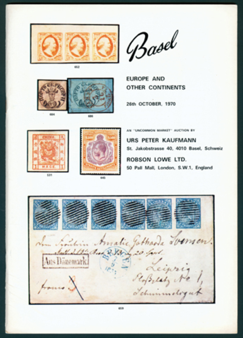 1970 (October 26) Europe and Other Countries, Robson Lowe (London), with prices realised, includes a portion of Sir Percival David Collection featuring essays, drawings, die proofs and plate proofs (with complete sheets) of the Large Dragons from Sir Robert Hart and Agnew Collections.