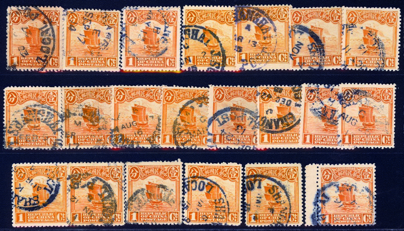 1914-19 Group of 22 Junk Issues (Chan 209 & 228), all fine used with Shanghai Local Post dater (22).