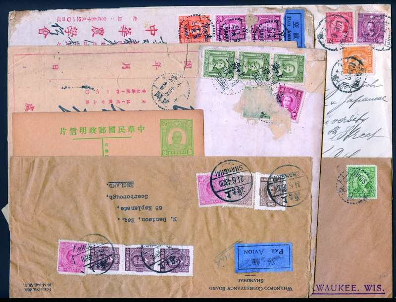 1947-48 Group of 6 Covers, used with various Dr SYS and Martyr issues, plus one SYS 8c postal card, unused and fine (7).