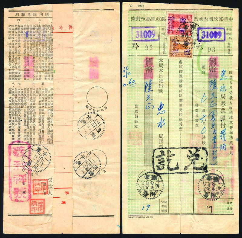 1949 Postal Remittance in Silver Currency, rejoined complete usage, very fine, scarce.