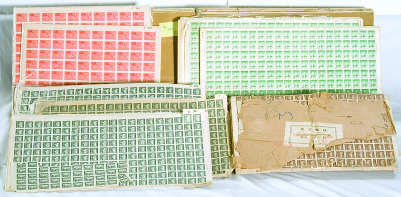 Large Accumulation of Sheets: 1949 Gold Yuan $10 Green, in sheets of 200, original pack of 500 sheets, very light damage and usual edge faults from storage, amazing quantity (100,000).