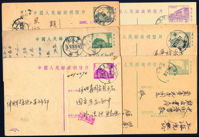 PRC 1950-60's Postal Card Group of 6, 5 postally used and one CTO, fine.
