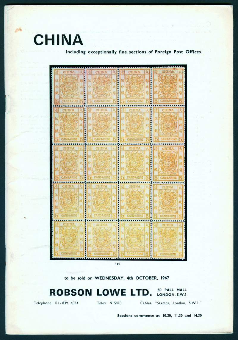 LITERATURE: 1967 (October 4) "China" including exceptionally fine sections of Foreign Post Offices, Robson Lowe (London).