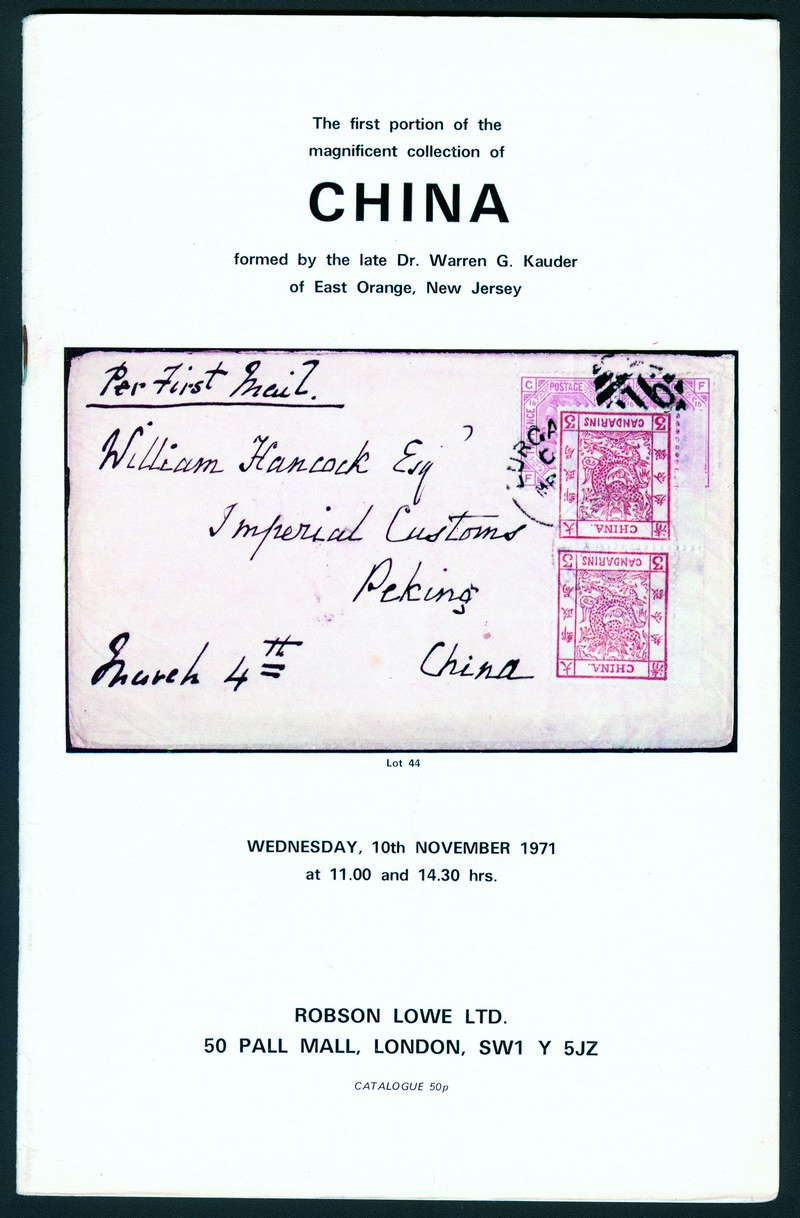 LITERATURE: 1971 (November 10) The First Portion of The Magnificent Collection of China formed by Dr Warren Kauder, Robson Lowe (London), with auction results.