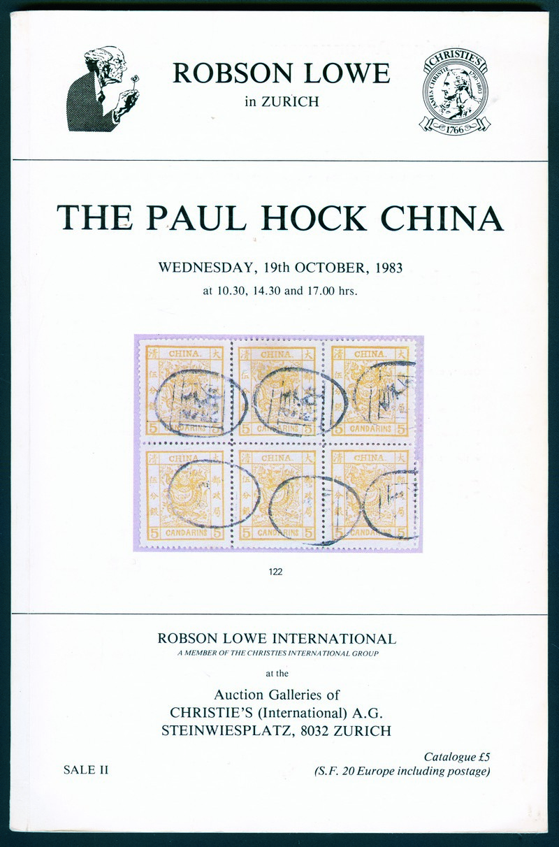 LITERATURE: 1983 (October 19) The Paul Hock China, Robson Lowe International (Zurich), with auction results.