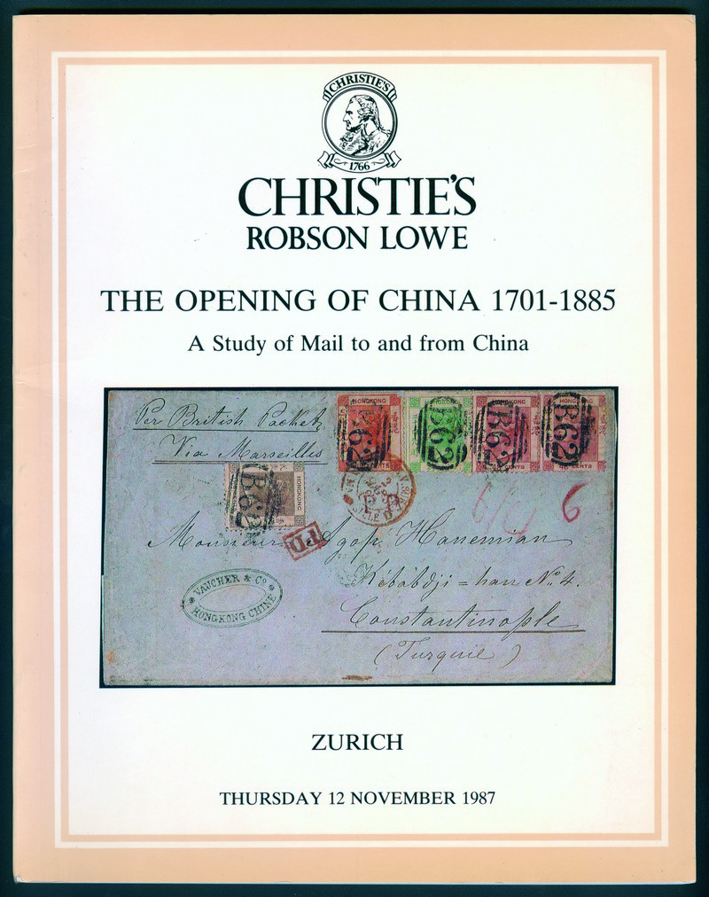LITERATURE: 1987 (November 12) The Opening of China 1701-1885, Christie's Robson Lowe (Zurich), with auction results.