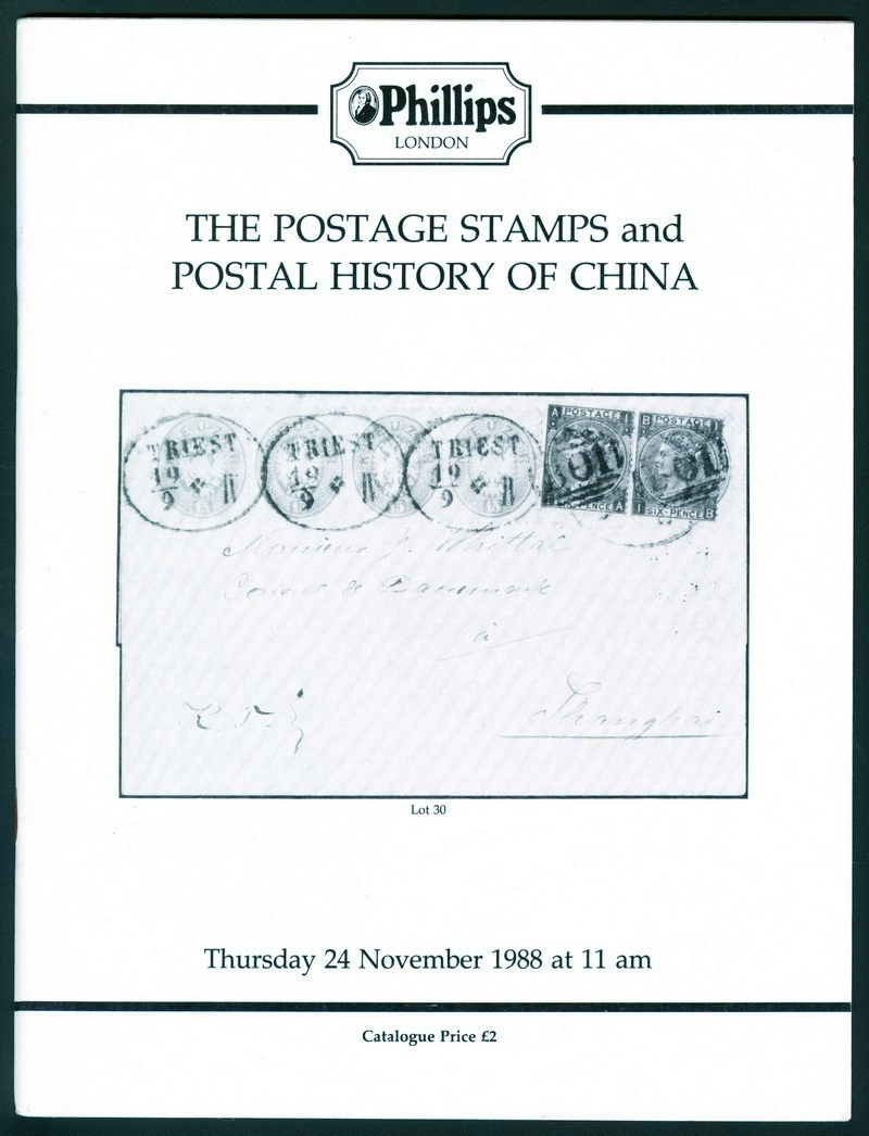 LITERATURE: 1988 (November 24) The Postage Stamps and Postal History of China, Phillips (London), with auction results.