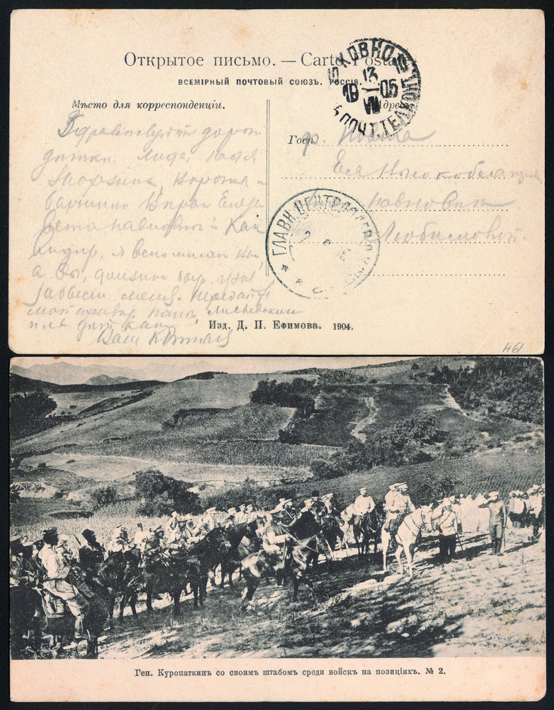 1905 (August 2) Field Post PC from Harbin to Kobho, tied by Harbin field post office cds, Kobho arrival cds alongside, fine.
