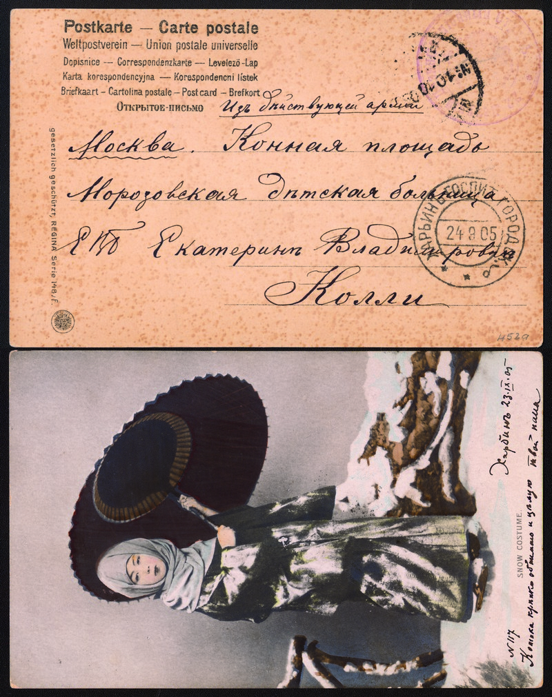 1905 (September 24) Russian-Japanese War Period Post Card from Harbin to Moscow, with 22 Letuchiy Dezinfektionnij Otryad cachet, tied by Harbin cds with Moscow arrival cds alongside, fine.