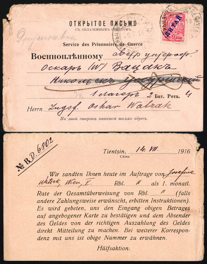 1916 (July 6) Post Card from Tientsin to Bat Pota, franked with Russian PO 3k, tied by Tientsin cds, fine.