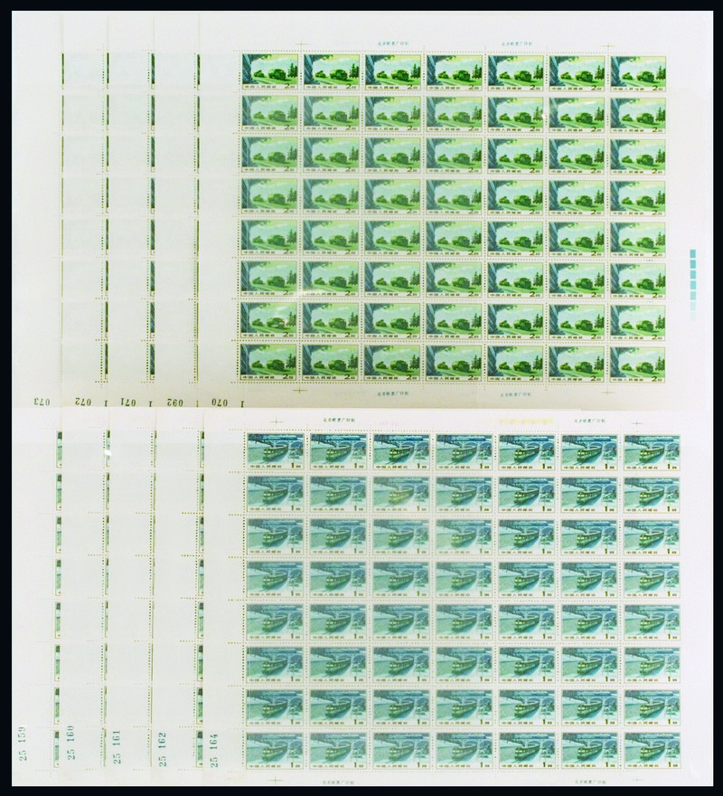 1973 (October 20) Communications and Transportation $1 and $2 (Yang R15; Scott 1177-1178), 280 complete sets of two in full sheets, folded once along perforation, light creases along margins, UM.