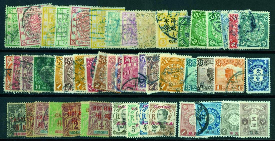 Used Imperial Period Selection, group of 31, including 2 sets of Large Dragons, one set of Small Dragons and various coiling dragons, plus some French and Japanese foreign post offices issues, viewing recommended (50).