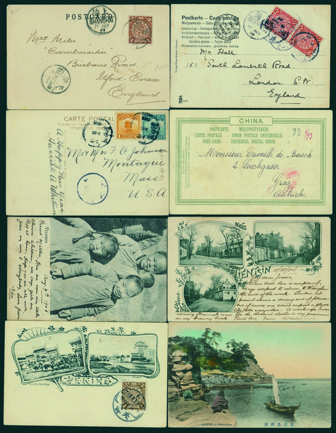 Group of Four Picture Post Cards, three franked with CIP coiling dragons, one with Junk issue (4).