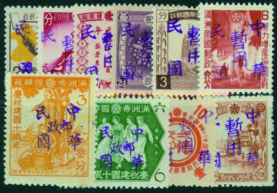Local Overprints of North-Eastern Provinces (Kerr 156.34-42 & 44), PAI CHUAN soft purple character “ROC Temporary Use” overprint set of 10 values, all fine unmounted mint (10).