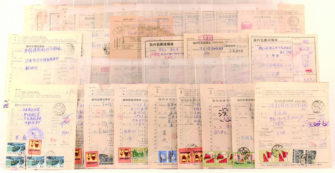 PRC 1980’s Postal Receipts, group of 34, mostly franked with regular issues tied by respective despatch cds (34).