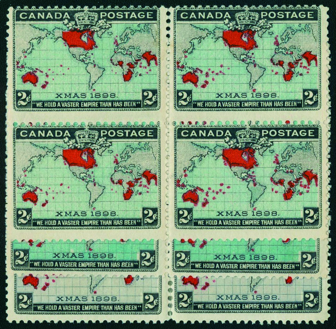 CANADA: 1898 Map Issue 2c (Scott 85-86), three mint blocks of four in different shades, fine (12).