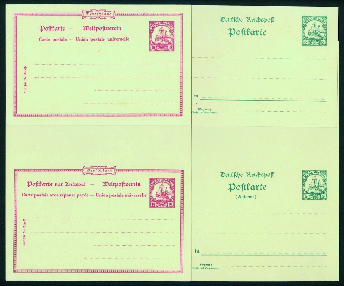 GERMAN NEW GUINEA: 1900 Yacht Design 5pf Green & 10pf Carmine Postal Cards (H&G 8-11), also 5pf+5pf & 10pf+10pf (unfolded), all fine unused and clean, post office fresh (4).