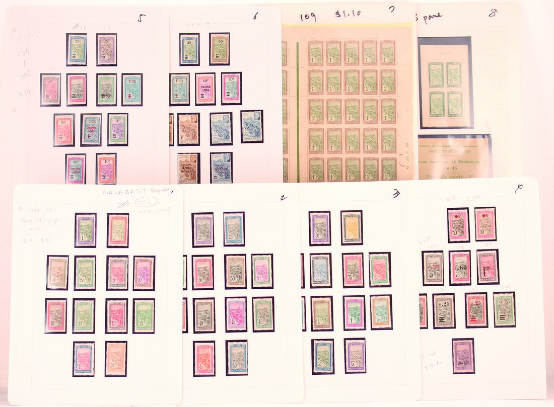 MADAGASCAR: 1908-42 Collection of Train Design and Surcharges on Train Design Stamps, over 100 stamps, better items include 1908-28 set of 36 plus 1fr part sheet of 30, 1921 surcharge set of 5, 1922-27 surcharge set of 12, 1927 15c dull green and light green booklet pane of 4 etc, all fine mint with light gum toning (100+).
