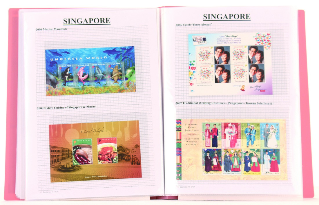 SINGAPORE: 1988-2008 Definitive & Commemorative Sheets, housed in clear folder, group of 49 all different issues, better items noted 1999 Transportation & 2001 Fishes low & high value MS, etc, all fine UM, face value over S$185 (49).