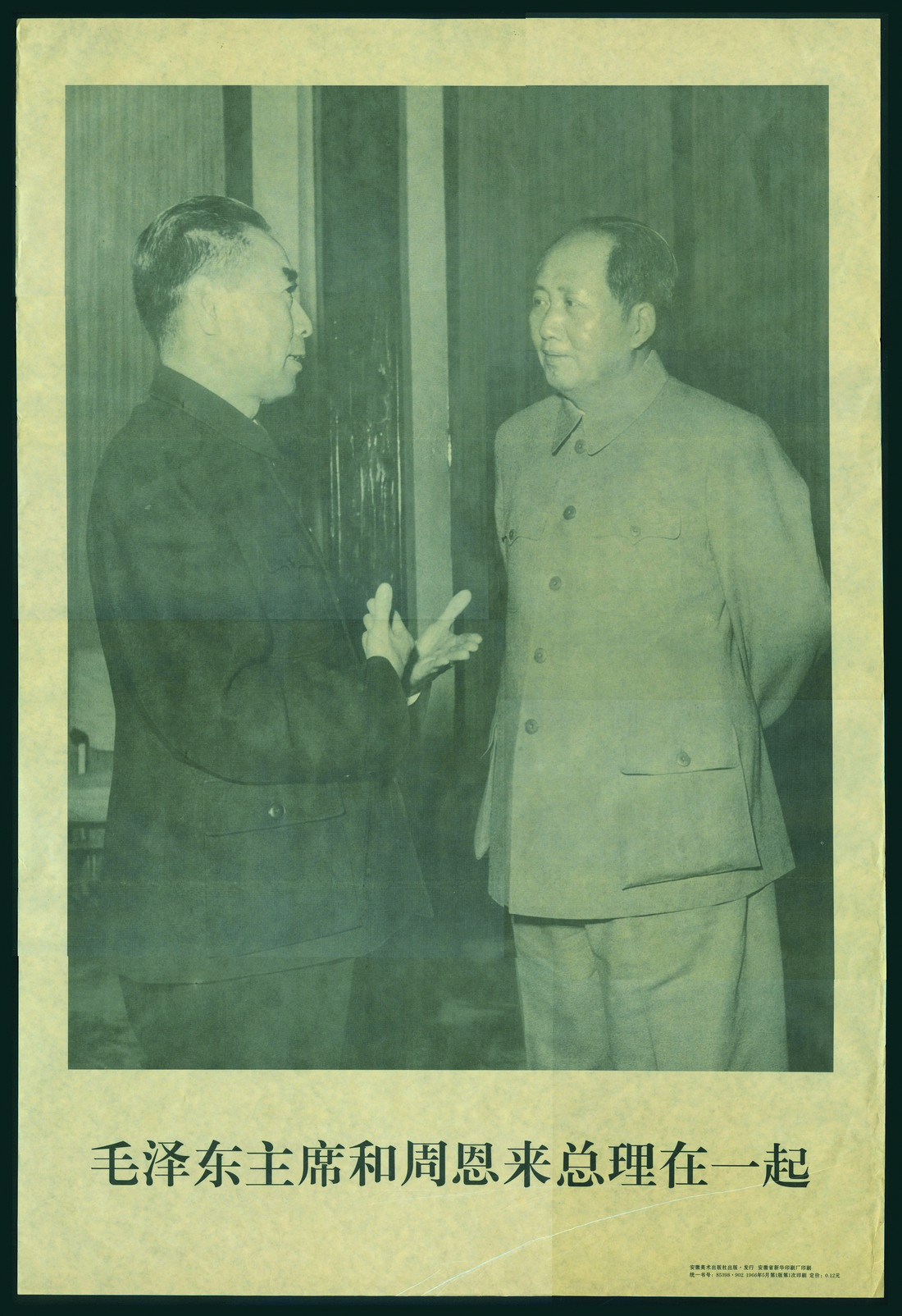 CULTURAL REVOLUTION PERIOD POSTERS: 1961 Chairman Mao with Zhou Enlai Poster, black and white, size 76cm x 51cm, printed by Anhui Xinhua Printing Co.