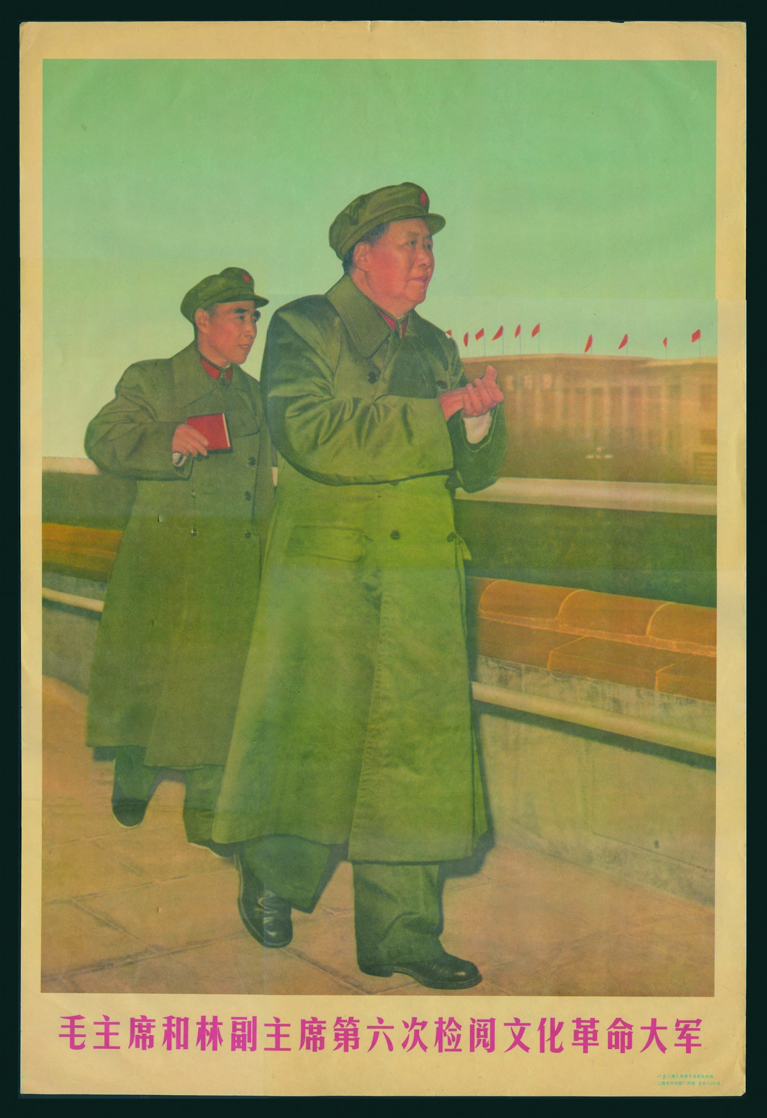 CULTURAL REVOLUTION PERIOD POSTERS: 1966 Chairman Mao and Lin Piao in Yan’an, colored, size 75cm x 51.5cm, slight tear at top left.