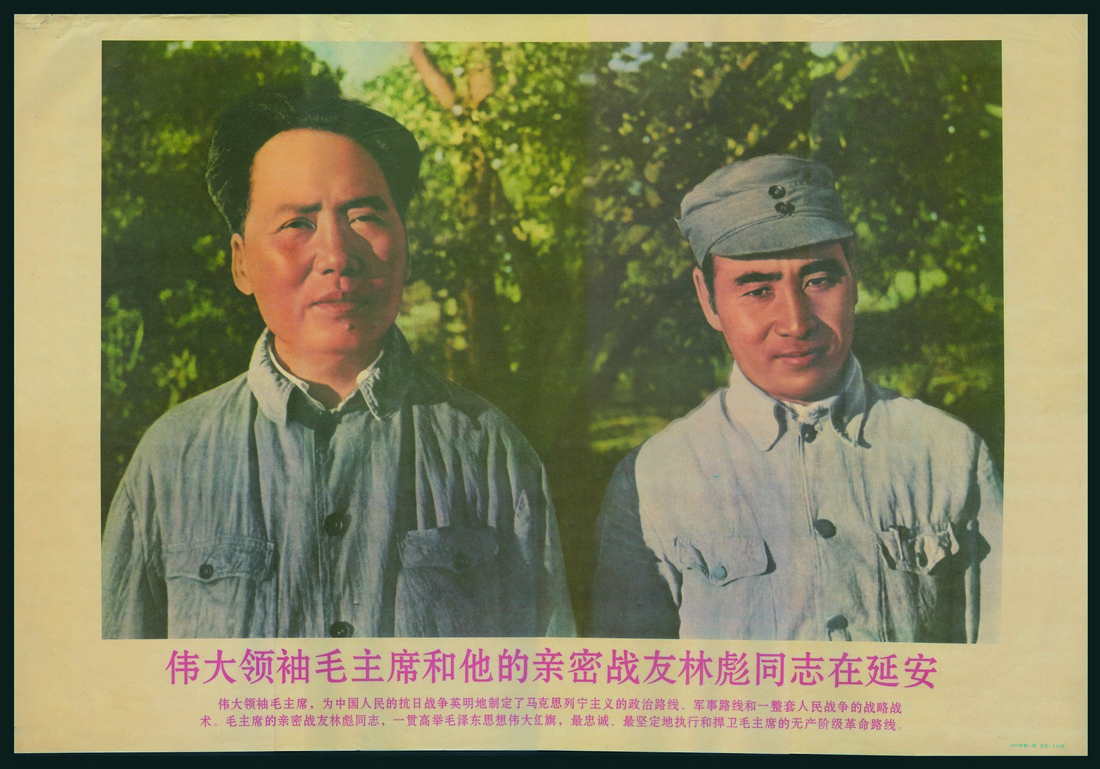 CULTURAL REVOLUTION PERIOD POSTERS: 1967 Chairman Mao with Lin Piao Poster, colored, size 75cm x 51cm.