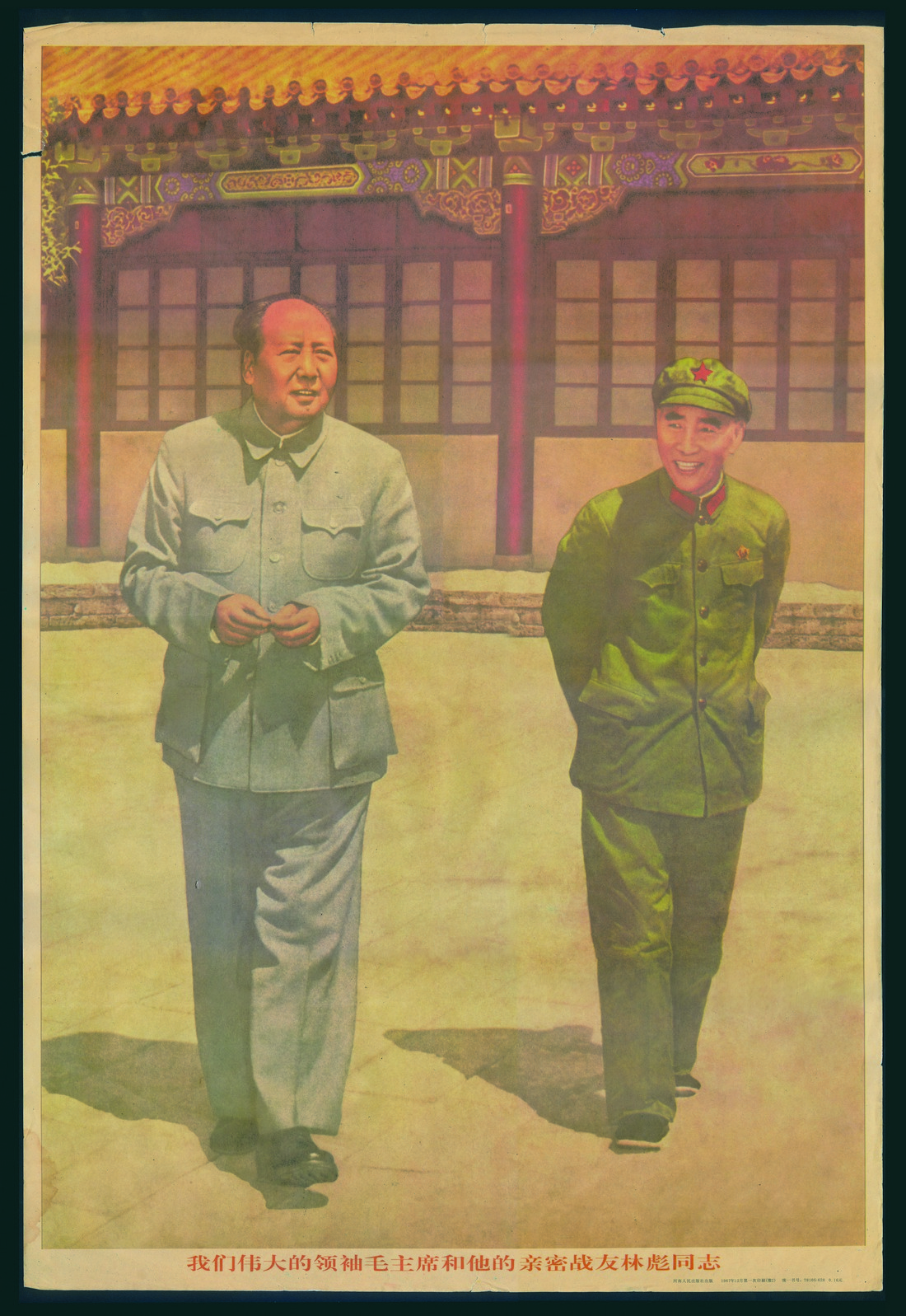 CULTURAL REVOLUTION PERIOD POSTERS: 1967 Chairman Mao with Lin Piao Poster, colored, size 76cm x 51.5cm, light tears at top and small part missing at left margin.