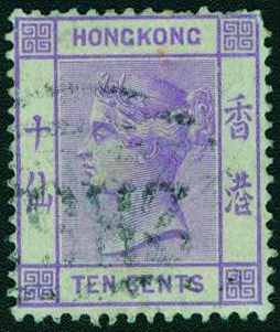 “2H62”: 1882-96 10c Dull Mauve, canceled by a part and light strike of “2H62” in black, a few defective perfs at the upper right corner, a scarce example of this cancelation.