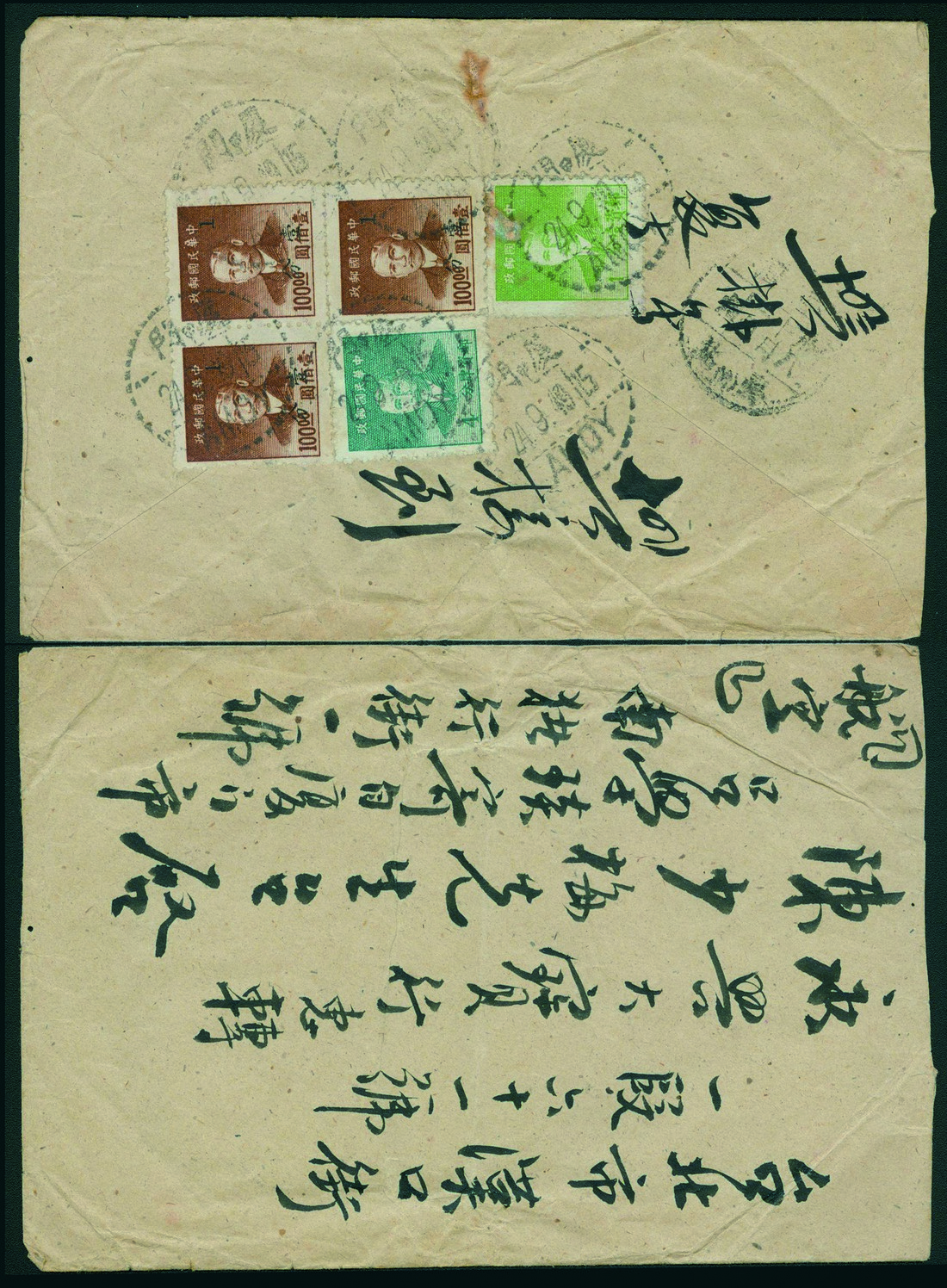 1949 (September 24) Registered Air Mail Cover to Taiwan, franked on reverse with Dr SYS Hwa Nan Print unit issues, tied by Amoy cds with Taipei arrival cds alongside, very scarce usage.