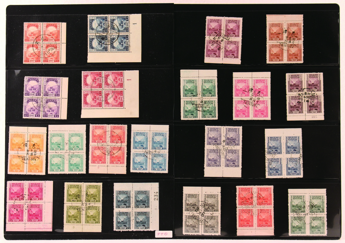 1946-48 London Print Truck Over Bridge Design & Peiping Central 1st & 2nd Printings (Chan P7-27; Scott Q7-27), complete sets in blocks of four, fine used (84).