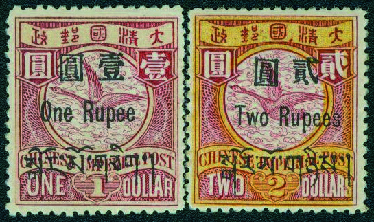 1911 Imperial Post Office in Tibet Surcharges on Waterlow Coiling Dragons (Chan T1-11), complete mint set of eleven, 3p on 1c to 2r on $2 (11).