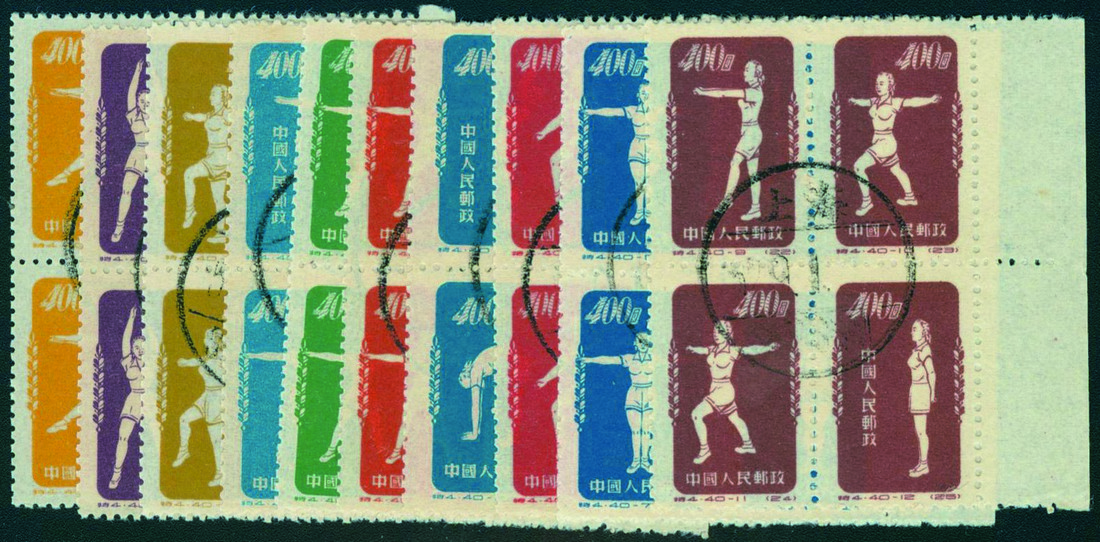 1952 (June 20) Gymnastics by Radio (Yang S4), complete original set of 40 in blocks with right margins, CTO (40).