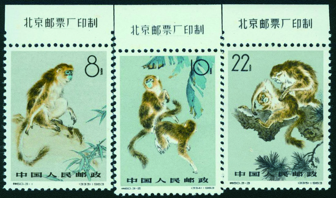 1963 (September 25) Golden Haired Monkey (Yang S60), complete imprint set of 3, unmounted mint (3).
