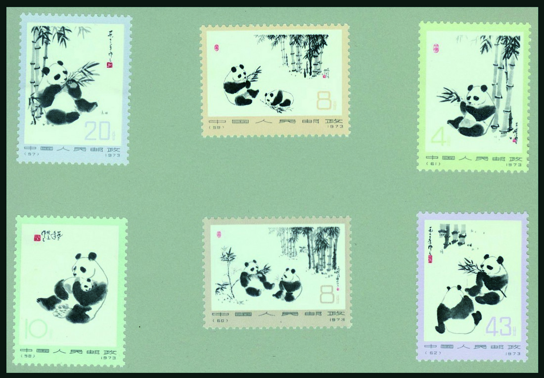 1963 (September 25) Golden Haired Monkey (Yang S60) and 1973 Giant Panda (Yang N14), mounted on official China Stamp Export Company presentation folder (9).