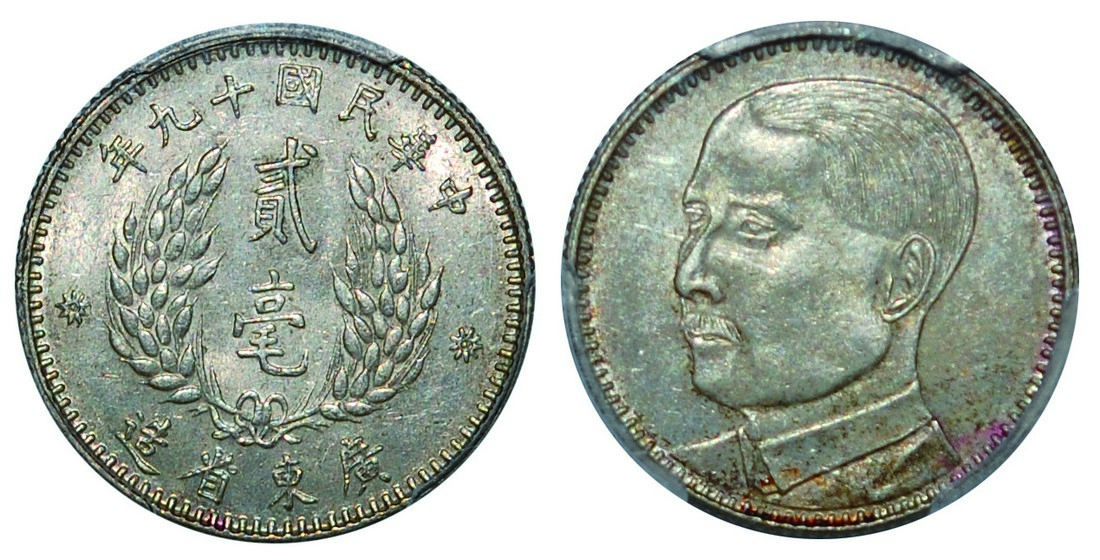 China, Kwangtung Province, Silver 20cents, Year 19 (1930), KM Y426, an extremely rare date that is unique in the PCGS population report, also Krause states that there is only 1 known, an unique opportunity to acquire the rarest coin in the Kwangtung republican issue, PCGS 58