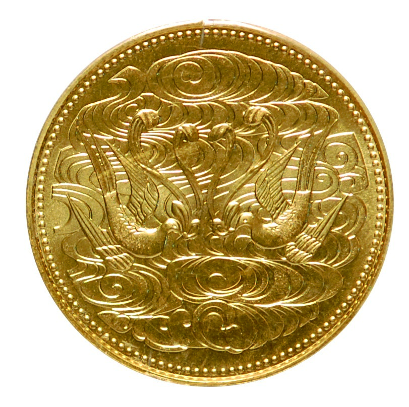 Japan, gold 100,000Yen, 61st Year of Showa (1986), Chrysanthemum emblem on obverse, doves and clouds on reverse, struck to commemorate the Diamond Jubilee of Emperor Hirohito, the coins contains 1oz of gold