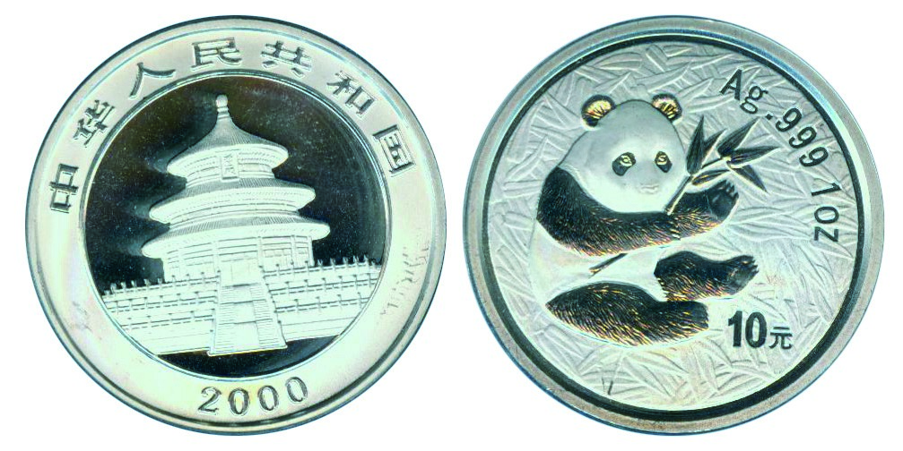 China, People's Republic 2000 Silver 10yuan Panda, PCGS MS67, scarce date
