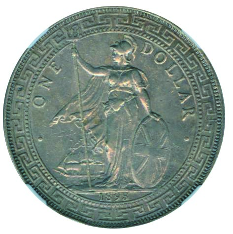 Great Britian, Victoria, Trade Dollar, 1895, NGCAU 53, rare date