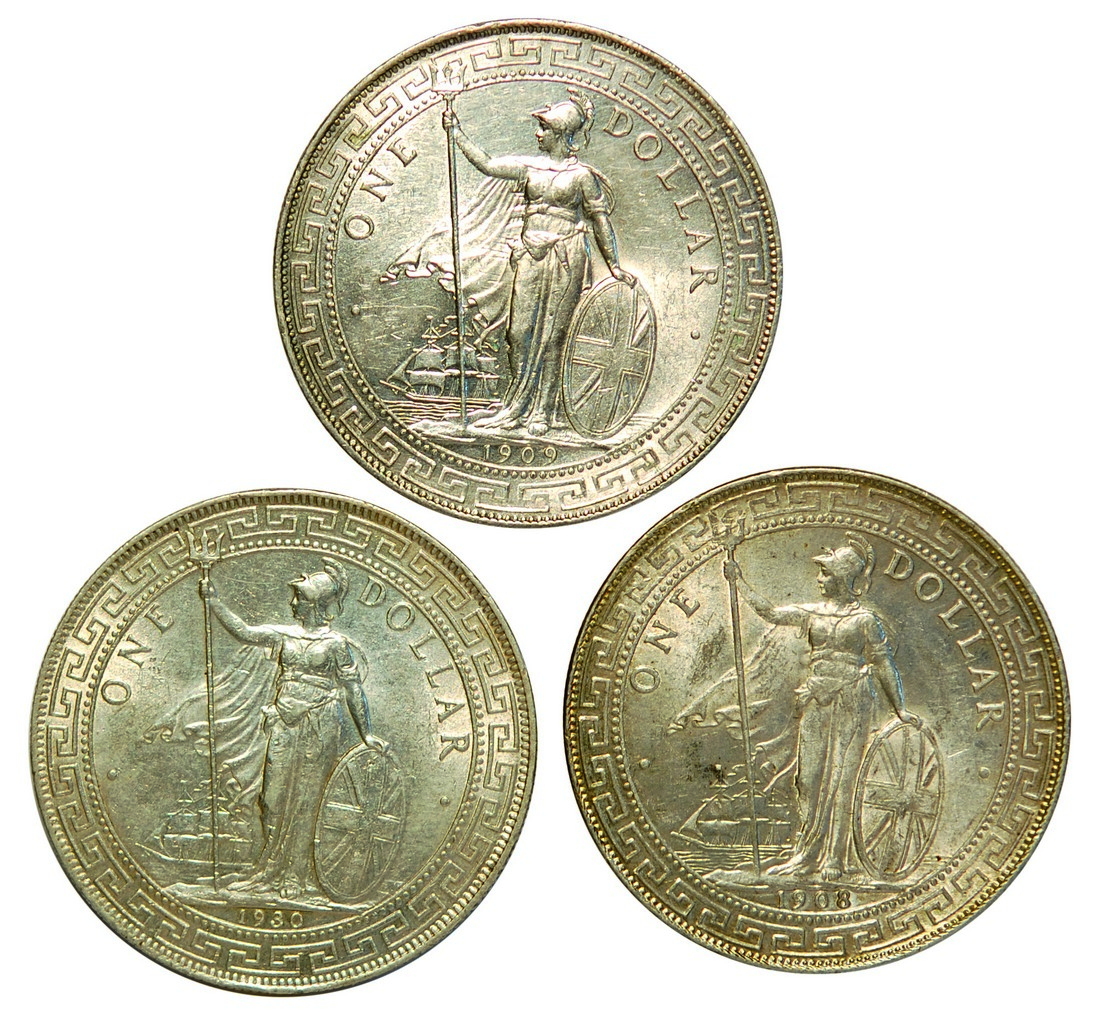Great Britain, British Trade Dollars, 1908B, 1909B and 1930, good extremely fine (3)
