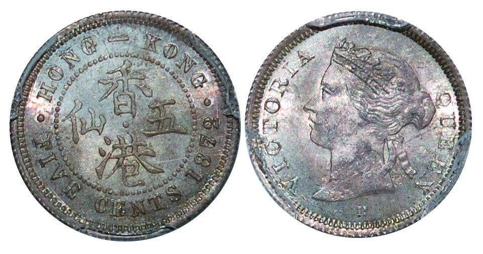 Hong Kong, 5cents, 1872/62H, Queen Victoria on reverse (Ma C8), scarce overdate, not mentioned in the Ma catalogue, PCGS MS64, rare in high grade