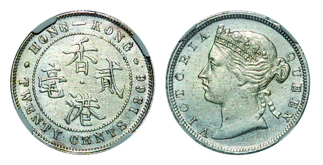 Hong Kong, Silver 20cents, 1866, NGC AU details, another high grade first year of issue