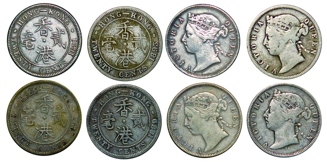Hong Kong, Silver 20cents, 1889, 1891, 1893 and 1895, (Ma C28), fine (4)