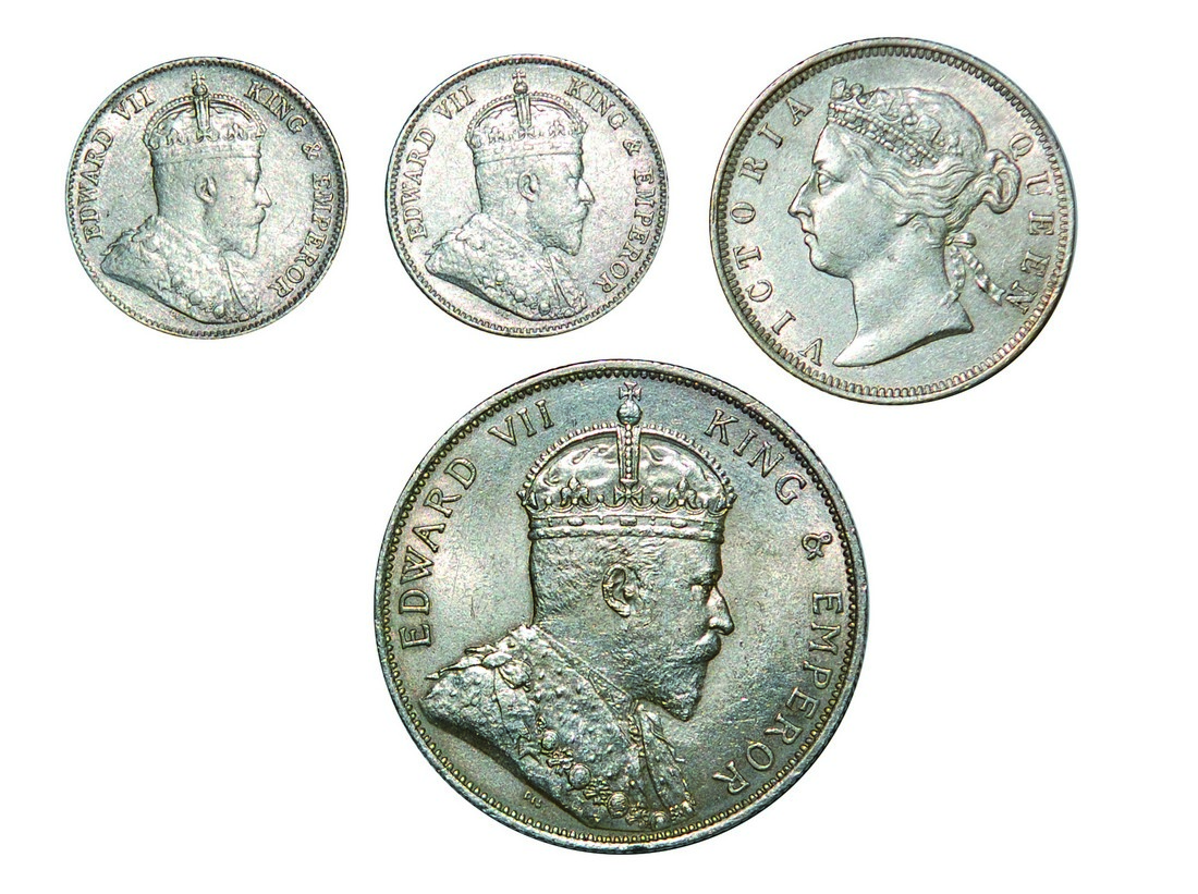 Hong Kong lot of 4 coins 10cents, 1903 and 1904, Edward VII on reverse, (Ma C19), good very fine, 20cents, 1894, Queen Victoria on reverse, (Ma C28), 50cents, 1905, Edward VII on reverse, (Ma C35), good extremely fine, lightly cleaned in the past (4)