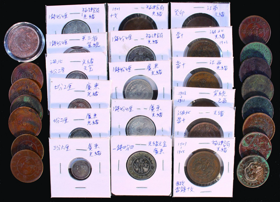 China, Empire, mixed lot of Silver 10 cents and 20 cents coins(10) and copper 10 cash coins(22), varies provinces, mostly very fine(32)