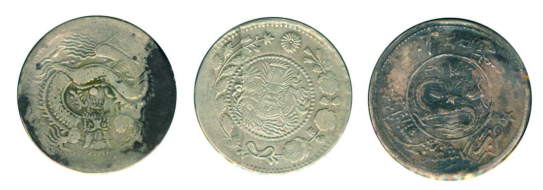 China, Sinkiang Province, a small lot of 5 miscals(3), Kuang Hsu, all Kashgar Mint, fine to very fine (3)
