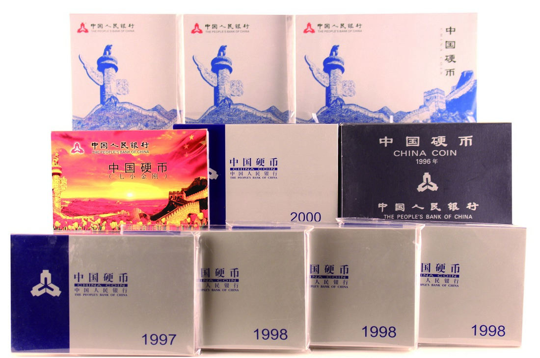 China, People's Bank of China, lot of coins mint sets (10), including 1- Fen set ,1982-2011, 2005-2011, 2- Fen set, 1982-1991, 5-Fen set, 1982-1992, 1-Fen to I Yuan set, 1996, 1997, 1998(3), 2000, all with presentation boxes and certificates, uncirculated. (10)
